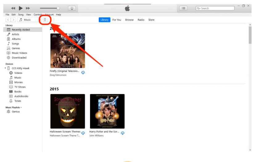 3. Select the tiny phone icon from the top left of the iTunes window.