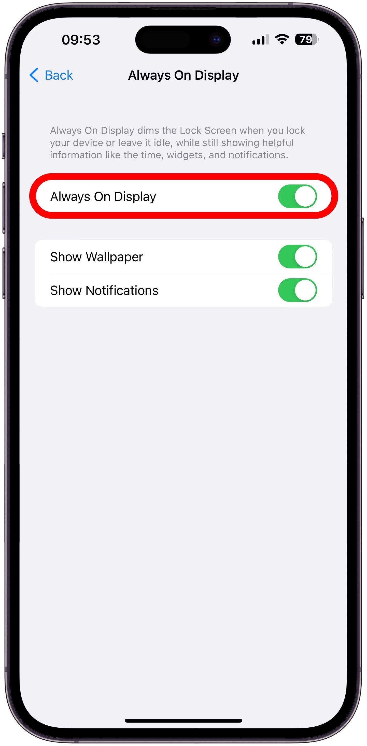 After this, the Always-On Display feature of your iPhone 14 Pro or iPhone 14 Pro Max will be disabled. You can turn it back on at any time from the same setting if you decide you want to use it again.