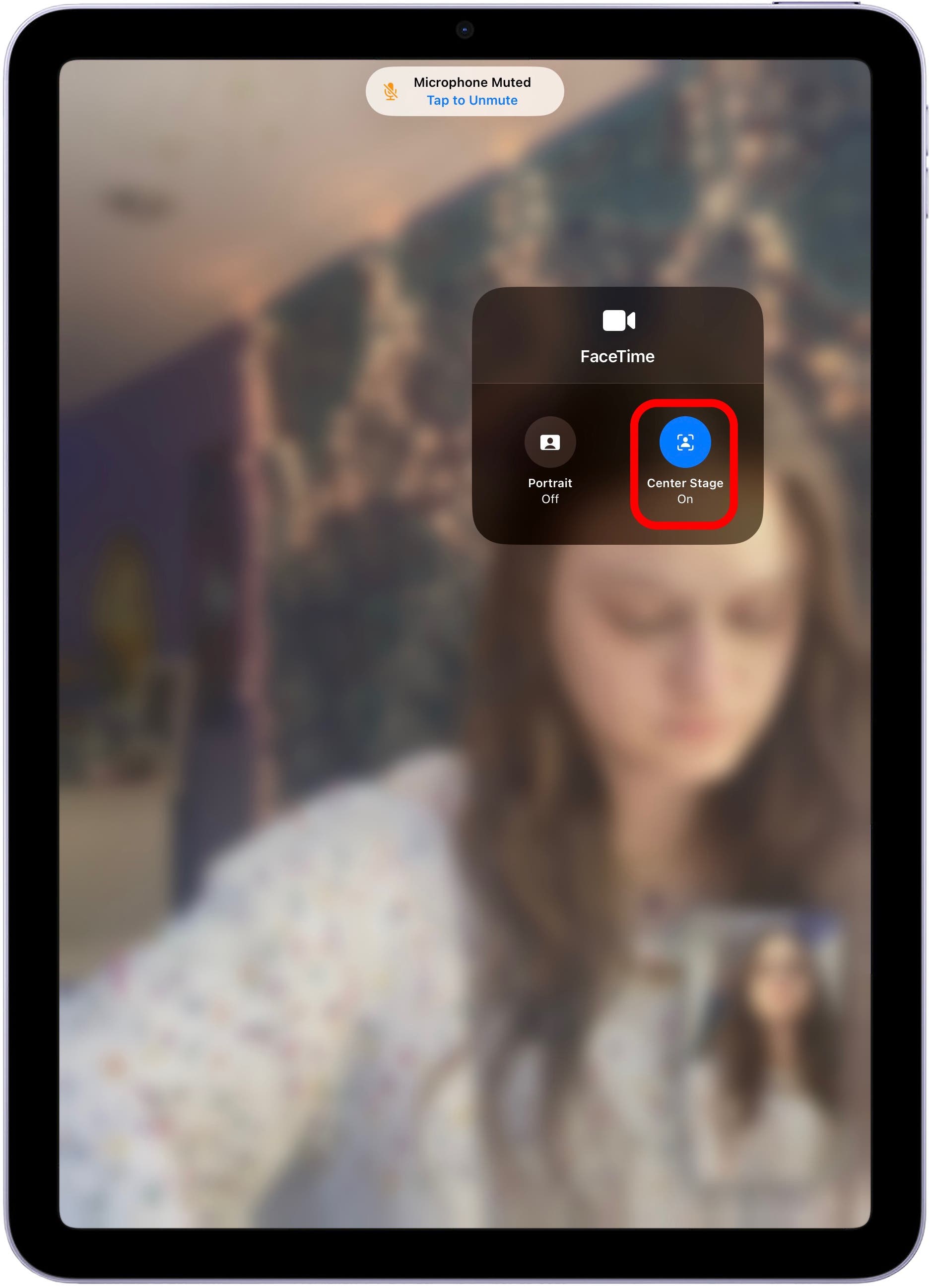 To enable and disable Center Stage on iPad, start a FaceTime call and swipe down from the upper-right corner to open the Control Center. Tap Video Effects. You will see the option for Portrait Mode and Center Stage. Tapping it will turn it on and off.