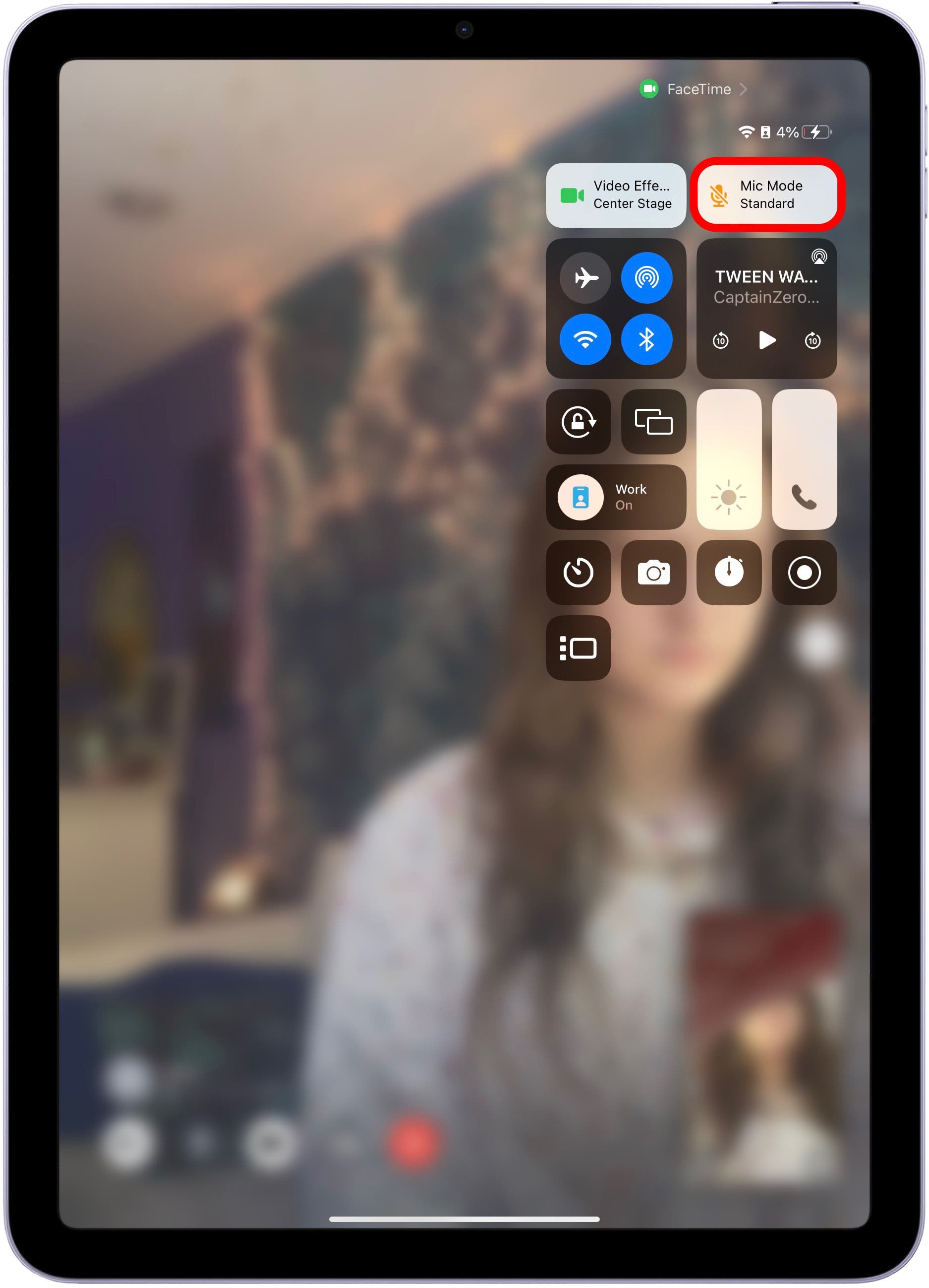 1. First Open FaceTime. Then, swipe down from the upper right-hand corner of your screen to open the Control Center. If your phone has a home button, swipe up from the bottom center of your screen. Tap the Mic Mode button.