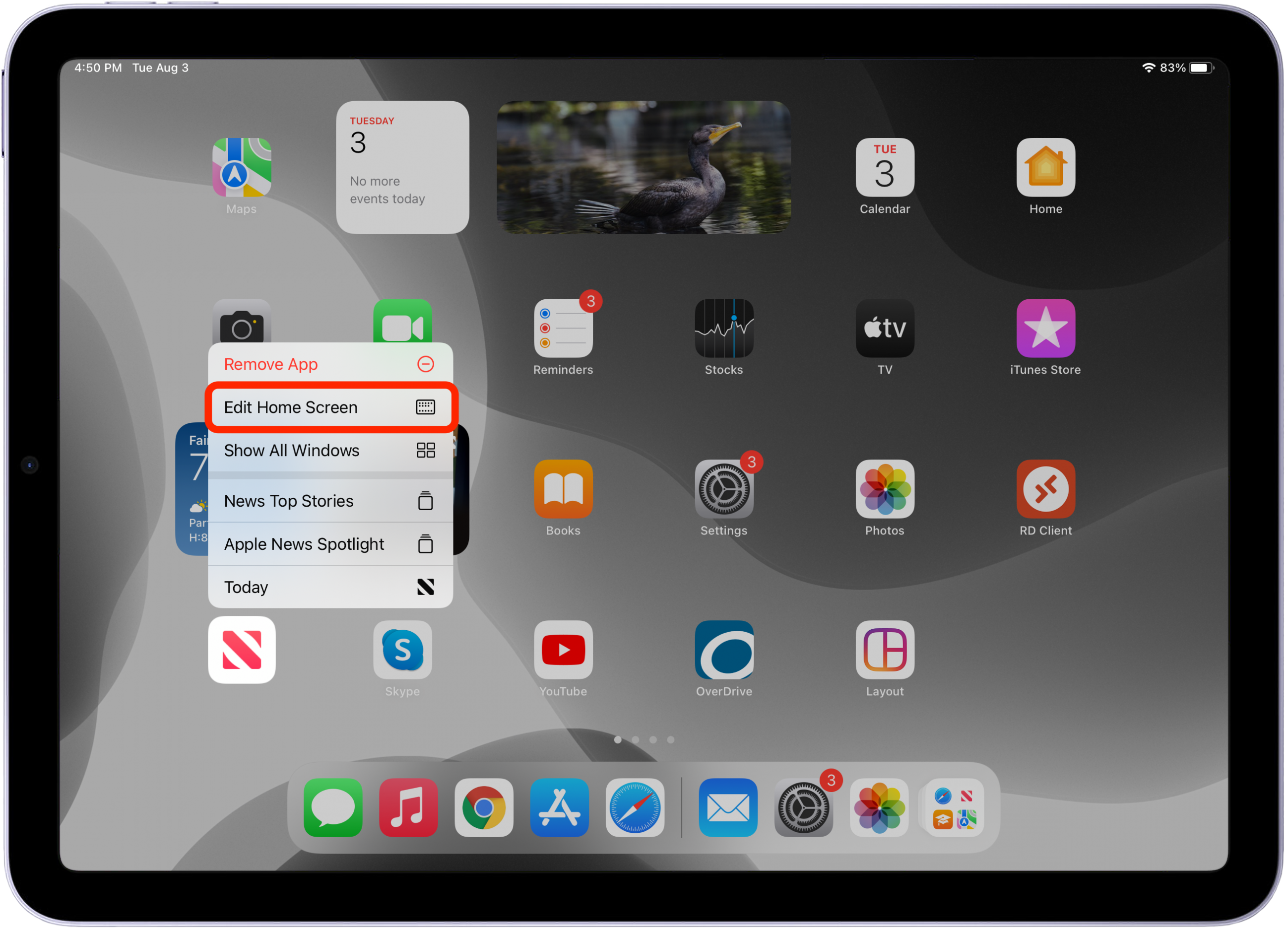 2. To add an app to your Dock, just long-press on an app icon until the pop-up menu appears. Tap Edit Home Screen.