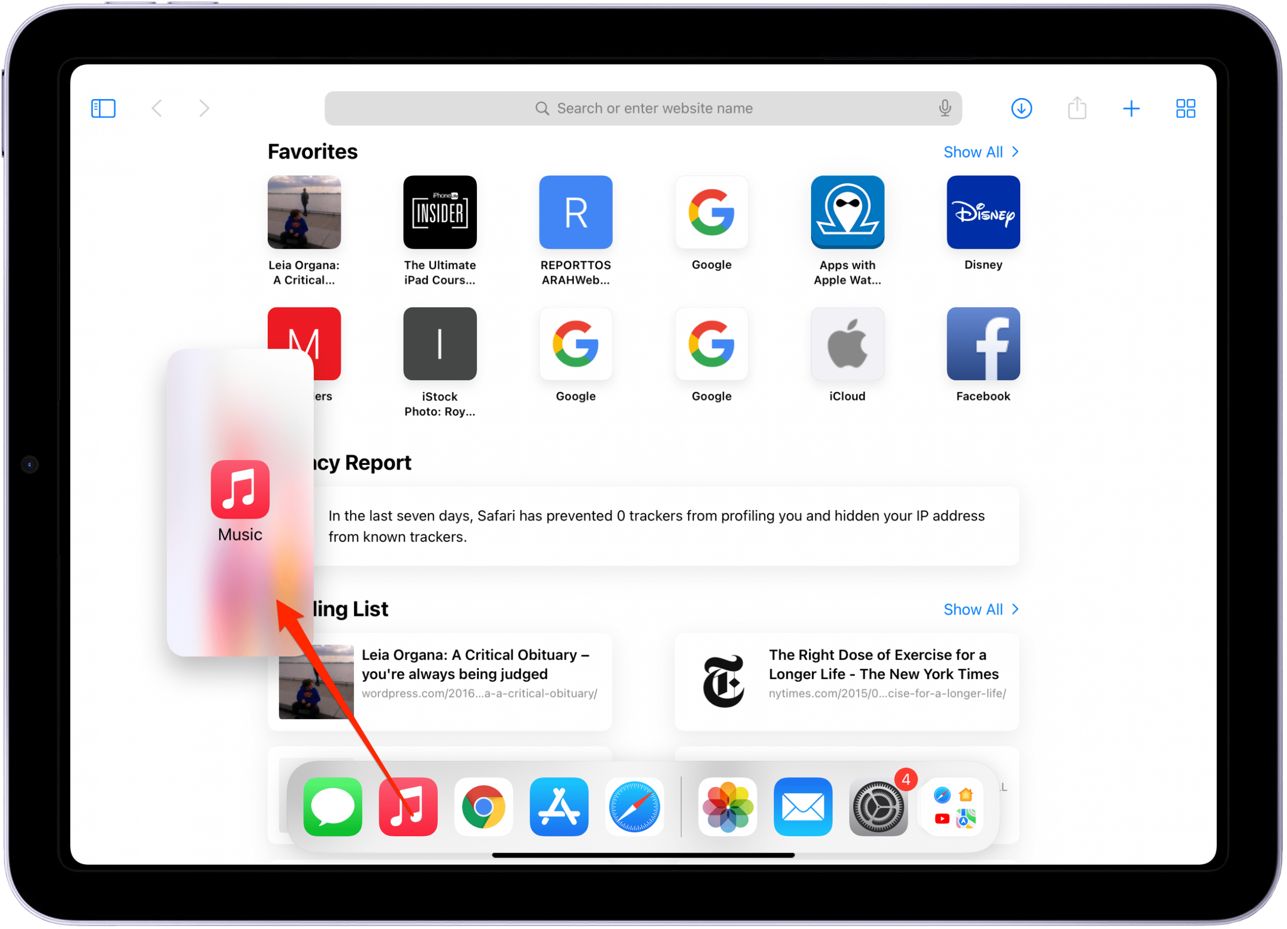 3. Another way to open Slide Over is to open your main app, then drag a second app from the Dock onto the screen.