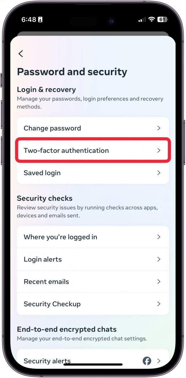 - Next, return to the Password and Security menu and tap on Two-factor Authentication.