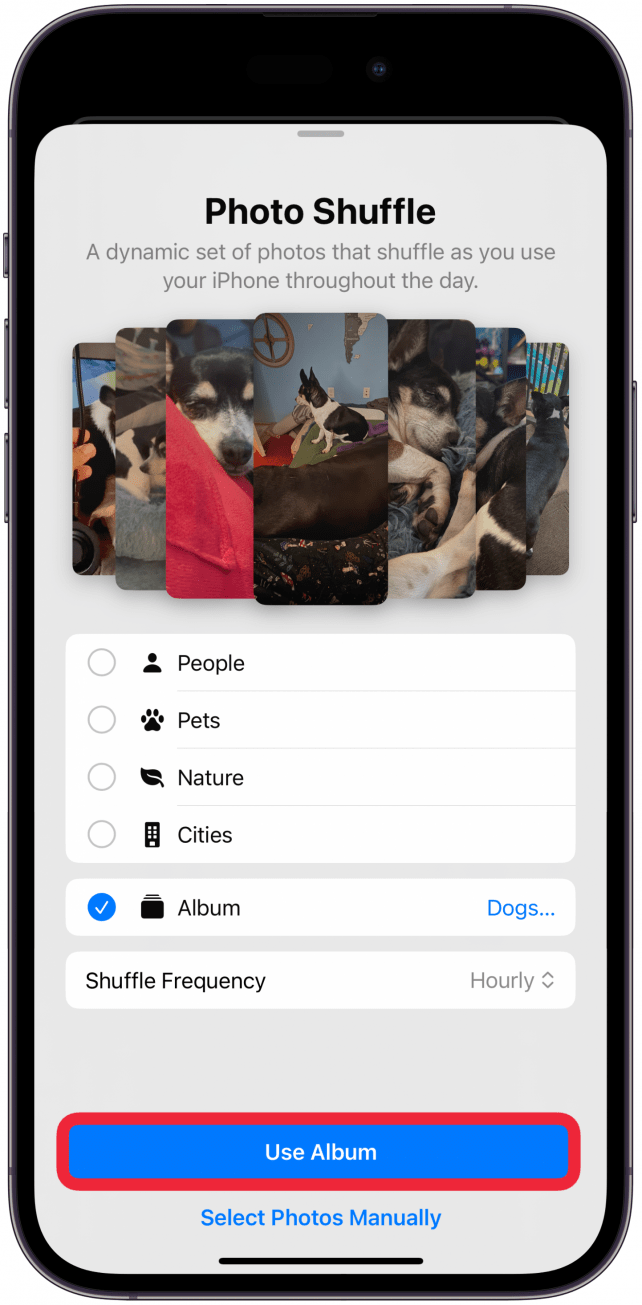 Now, Photo Shuffle should only show you photos from the selected album on your Lock Screen! Next, learn how to create a Focus-based Lock Screen. For more iPhone tips, don't forget to sign up for our free Tip of the Day newsletter.