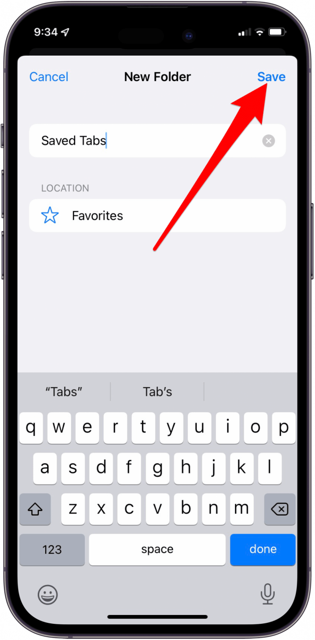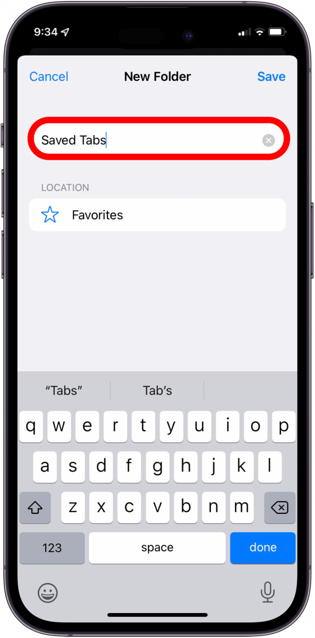 - Create a name for the new folder. Now you can find your saved tabs anytime by tapping the Bookmark icon in Safari