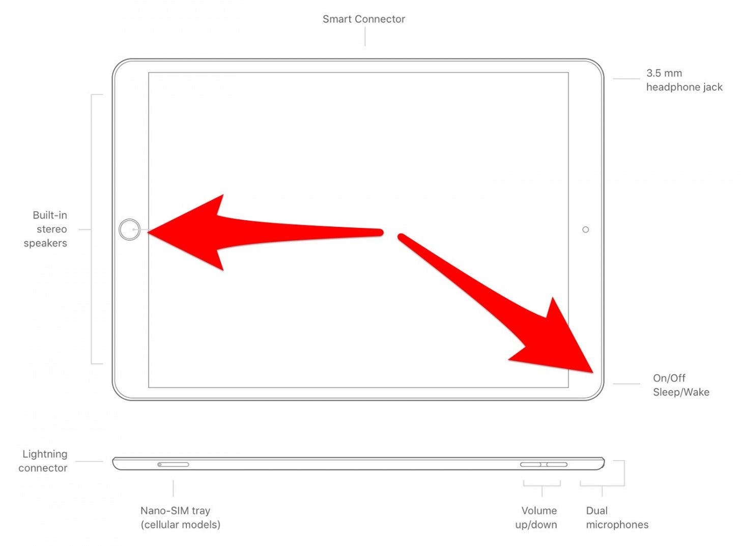 - Press the Sleep/Wake button and the Home button simultaneously.