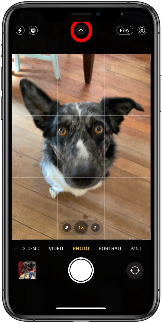 - Tap the small gray arrow at the top of the screen on your iPhone 11 or later.