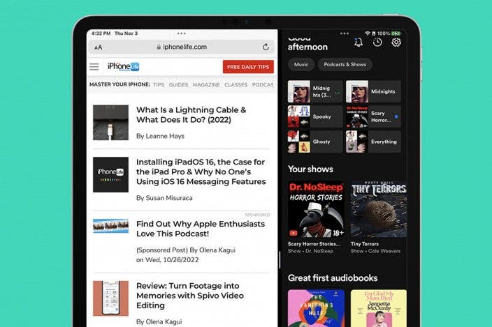 Learn MoreOne of the ways that Apple has introduced multitasking abilities to its iPads is through Split View, often called split screen. Split screen on the iPad allows you to open, view, and use two separate apps or windows on the iPad at once. We'll show you how to use split screen on your iPad and get rid of split screen on your iPad when you're finished.