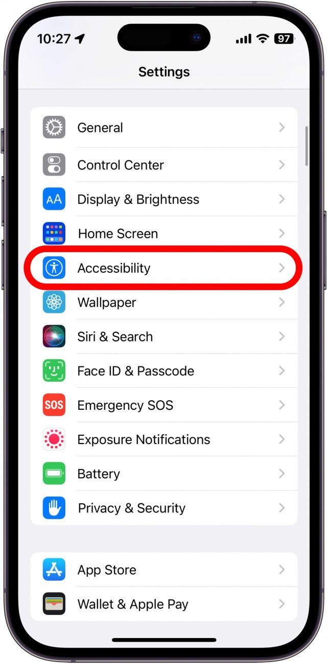 - Open Settings, and tap Accessibility.