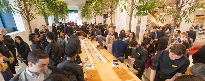 People arrived very early for the opening. In one video, you can see a crowd of people stretched down the city block as Apple employees run out to greet them. The new store employs over a hundred people.