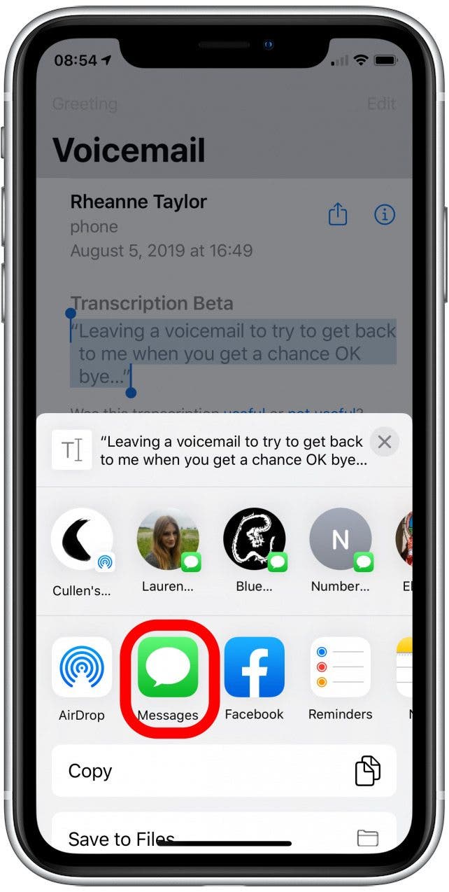 Not every voicemail can be transcribed by your iPhone, but if the one you've chosen has a transcription, here's how to share it: