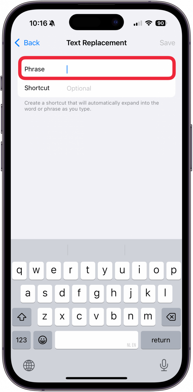 - In the Phrase field add the emoji you want to create a shortcut for.