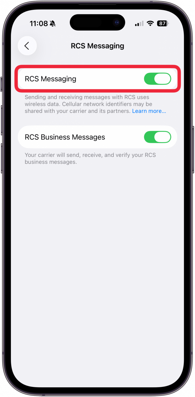 - Make sure RCS Messaging is toggled on.