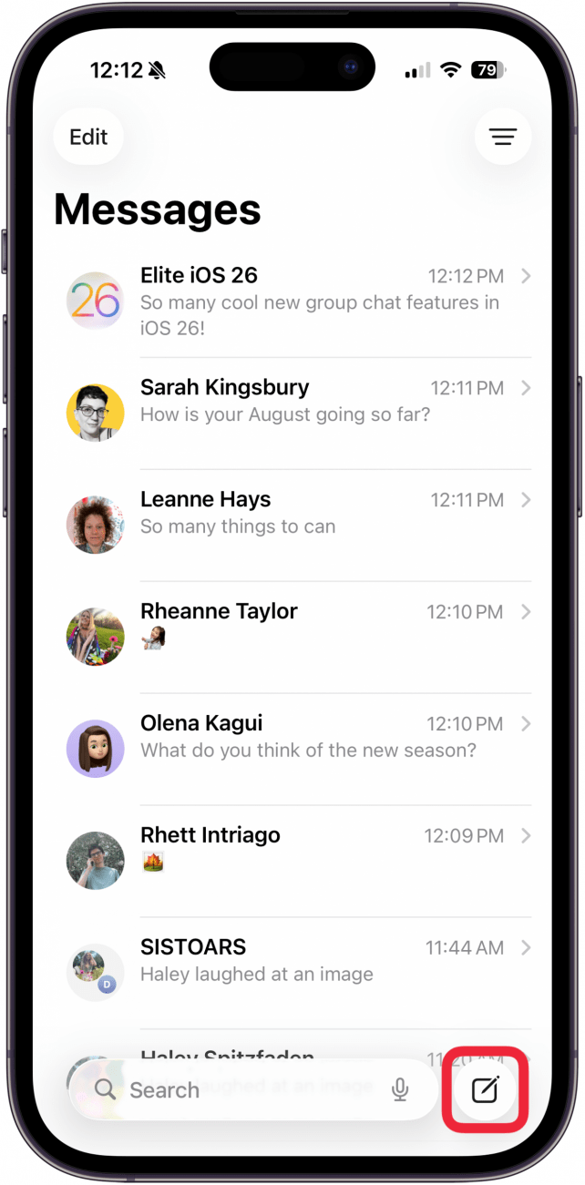 - Tap the compose icon in the lower-right corner.