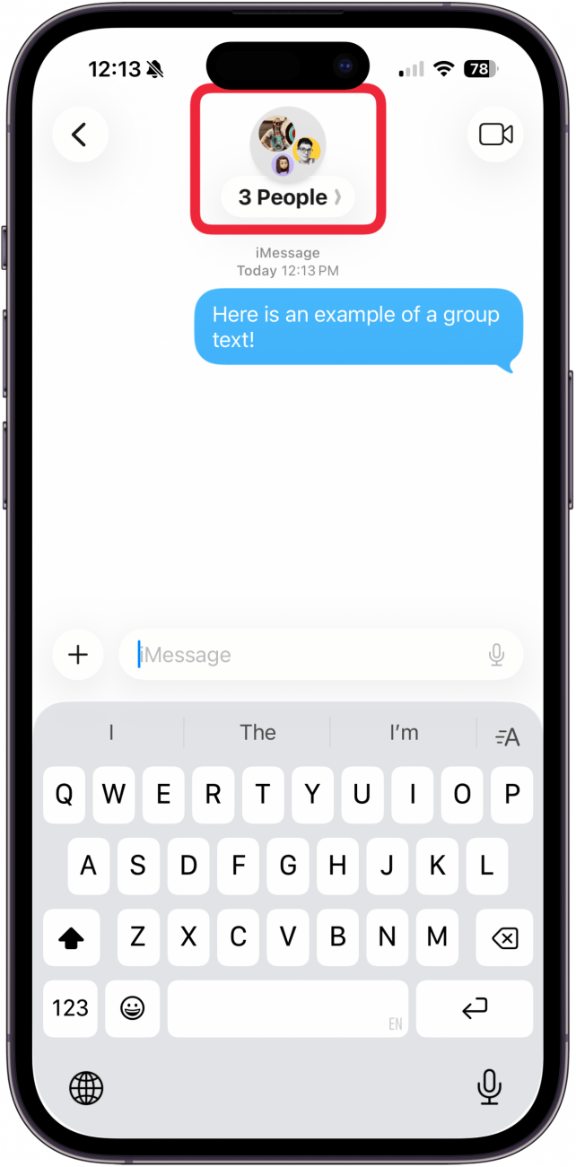 - Open the iMessage group chat and tap the group info at the top.