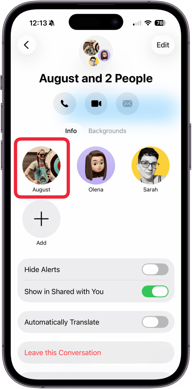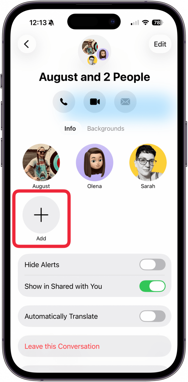 - To add someone to the group chat, tap Add.