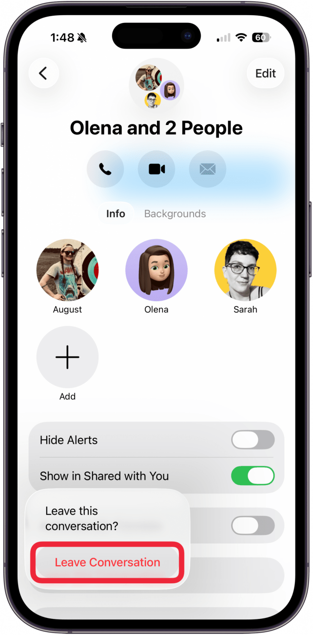 - Tap Leave this Conversation.