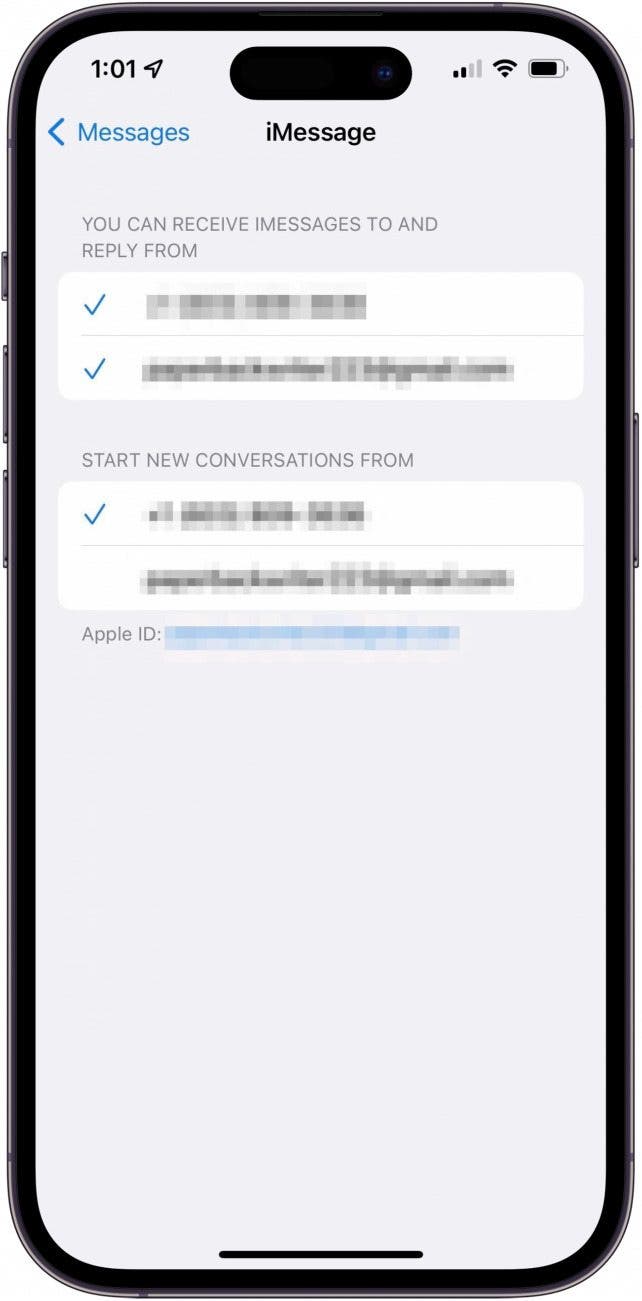 If iMessage is grayed out, select your emails, redo step two, and return to make sure your number is checked. You should also be able to reselect your email, if desired. If your iMessage problem is that they’re sending from your email, locate Start New Conversations From and select your number instead of an email. This should fix the iMessage grzyed out issue!