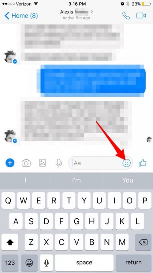 - To access the stickers you have, just open a message and tap the smiley-face icon in the menu bar.