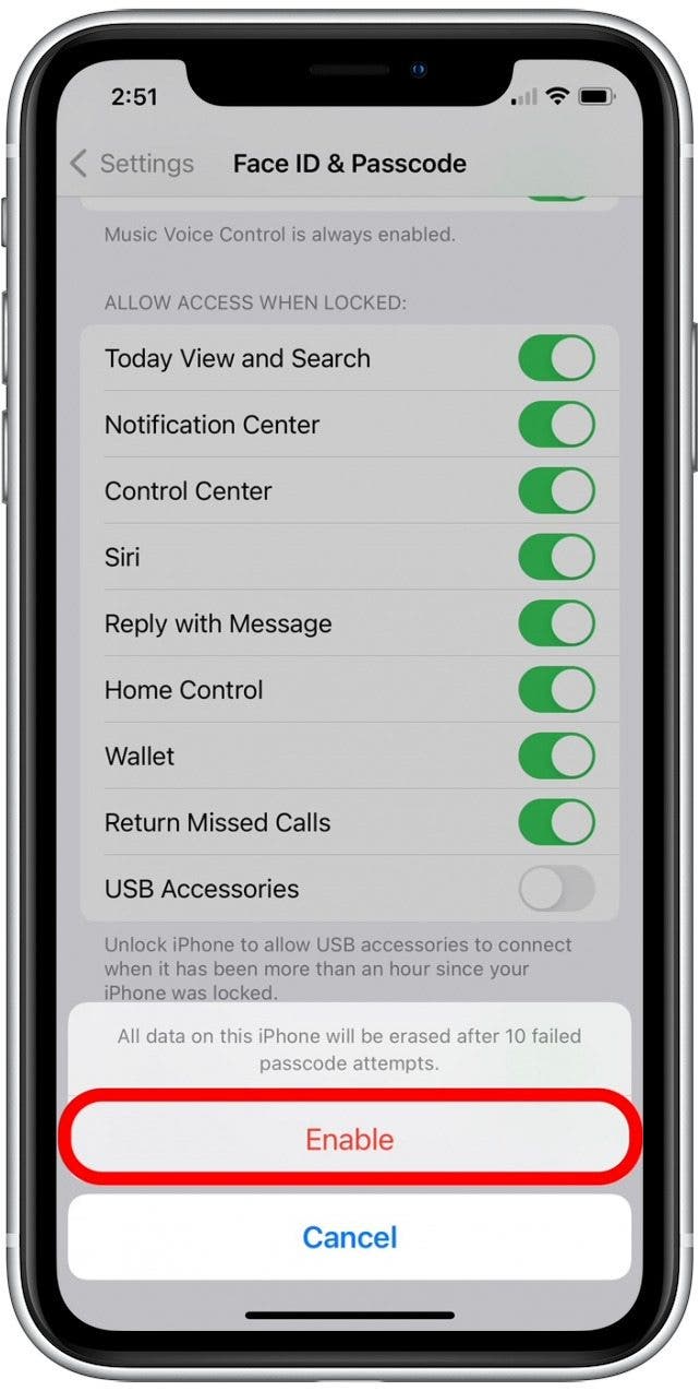 - Tap Enable to confirm.