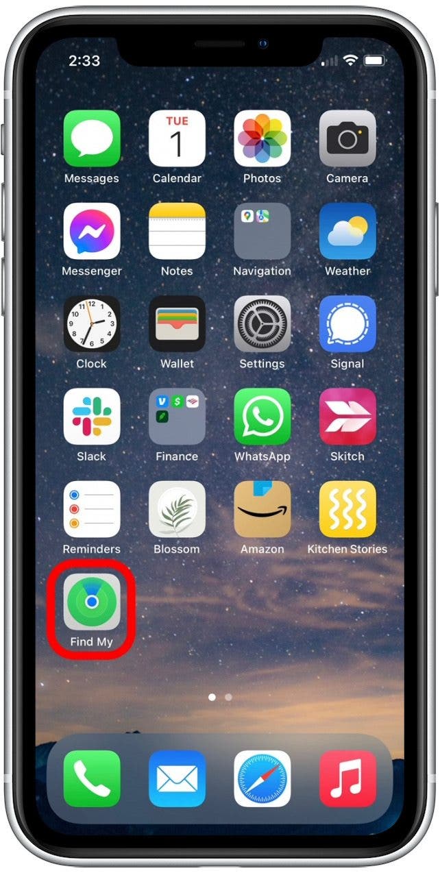 - Open the Find My app.