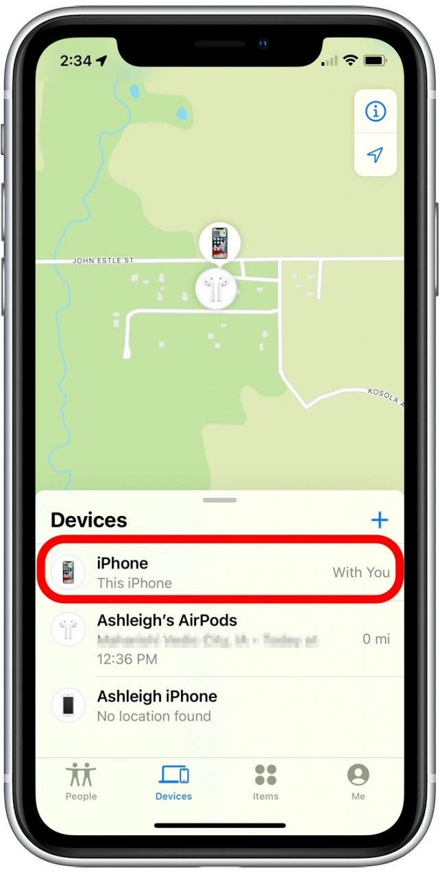 - Tap the name of your iPhone in the list of devices.