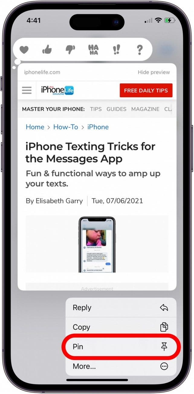 Gone are the days of scrolling through texts to find a YouTube video or news article your friend sent several weeks ago. With the latest version of iOS, you can now pin shared content so you don't have to search through old messages! We'll show you the quick method to pin items in Messages for easy access later.
