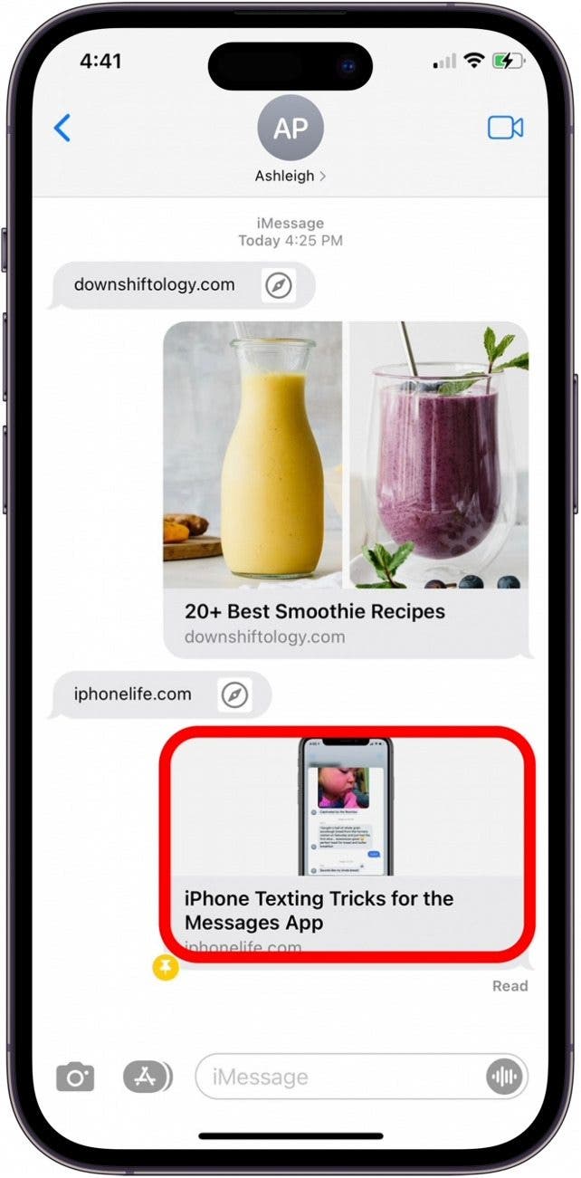 - Avoid scrolling to find recipes, online videos, and other links sent in the Messages app.