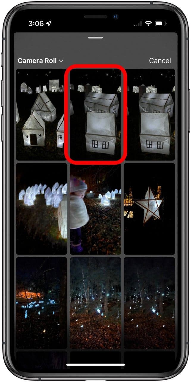 - Select the photo you want to include in your collage. You can only do one at a time, so repeat as many times as necessary.