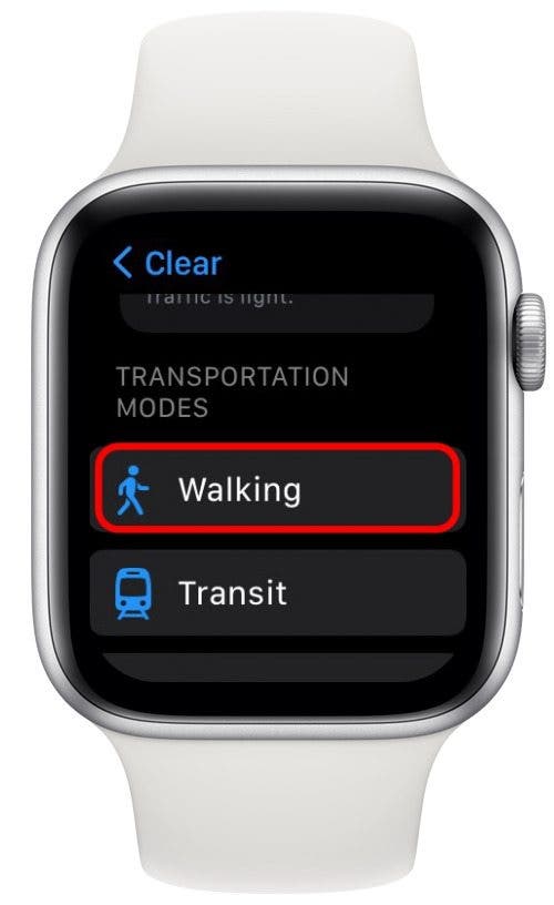 Select your transportation mode (which should be Walking unless you've left it at another location).
