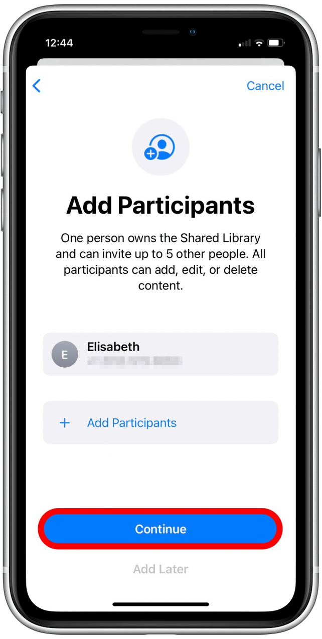 Once you've done these steps, the people that you add will be able to see your entire photo library. Now you know how to share all your photos to the iCloud Shared Photo Library! If you'd rather only share a curated selection of your photos, you can learn how to share photos manually.