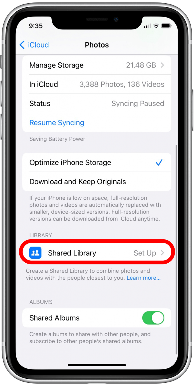 Unlike existing shared libraries, which are created in the Photos app, the iCloud Shared Photo Library is created through settings.