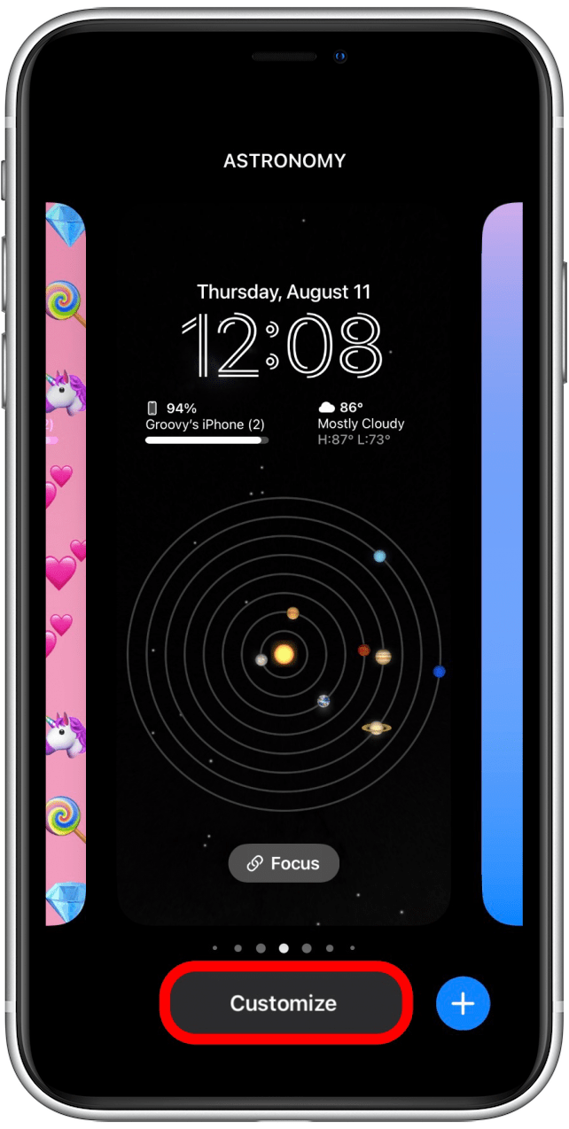 - Choose a Lock Screen that you want to add widgets to and tap Customize.